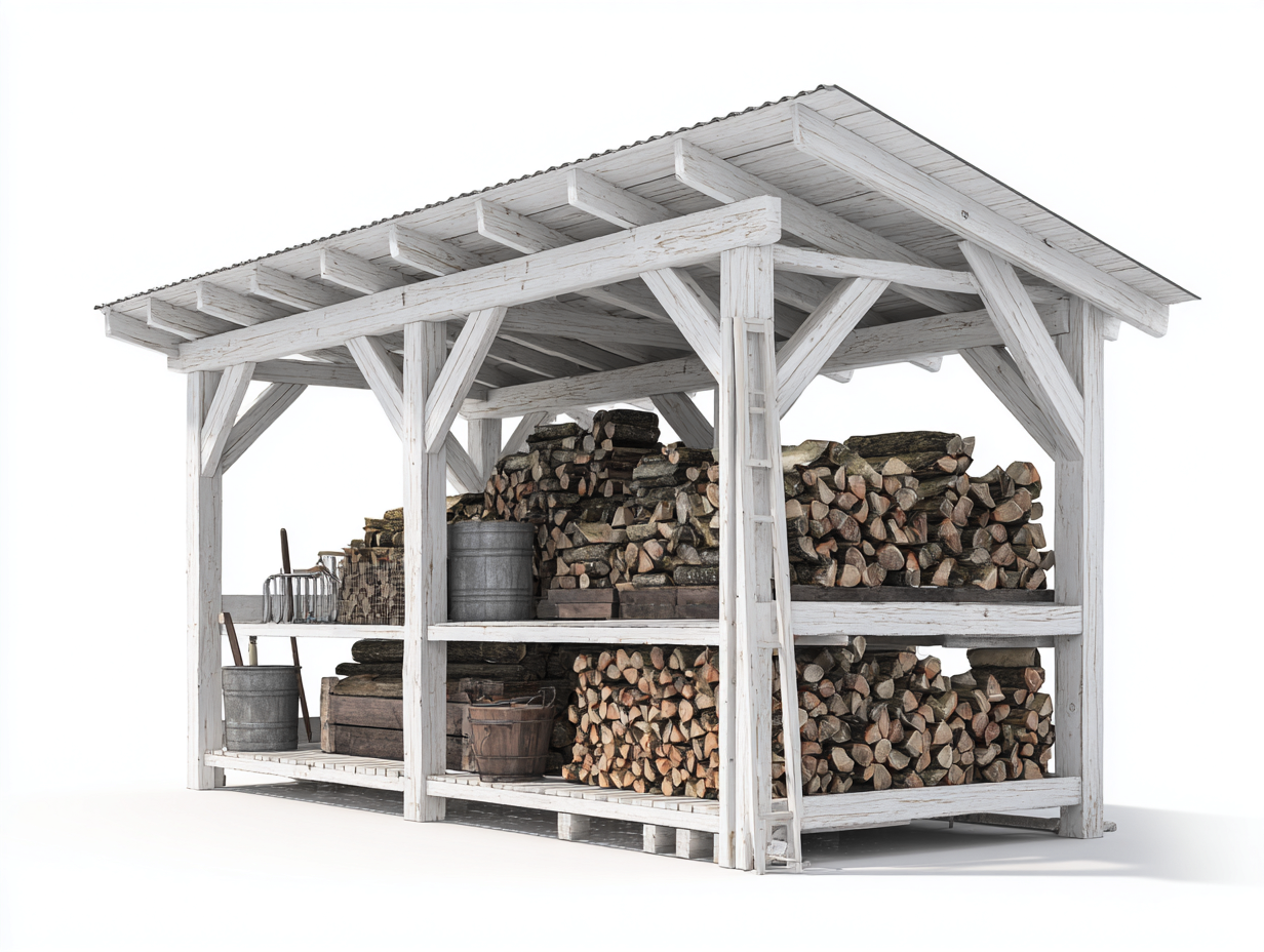 Este leñero de exterior está diseñado para mantener la leña organizada y protegida en jardines, patios o zonas exteriores. Su estructura abierta permite almacenar troncos de manera ordenada y facilita el acceso cuando se necesita combustible para chimeneas o estufas. El techo inclinado contribuye a proteger la leña de la lluvia y otras condiciones climáticas.